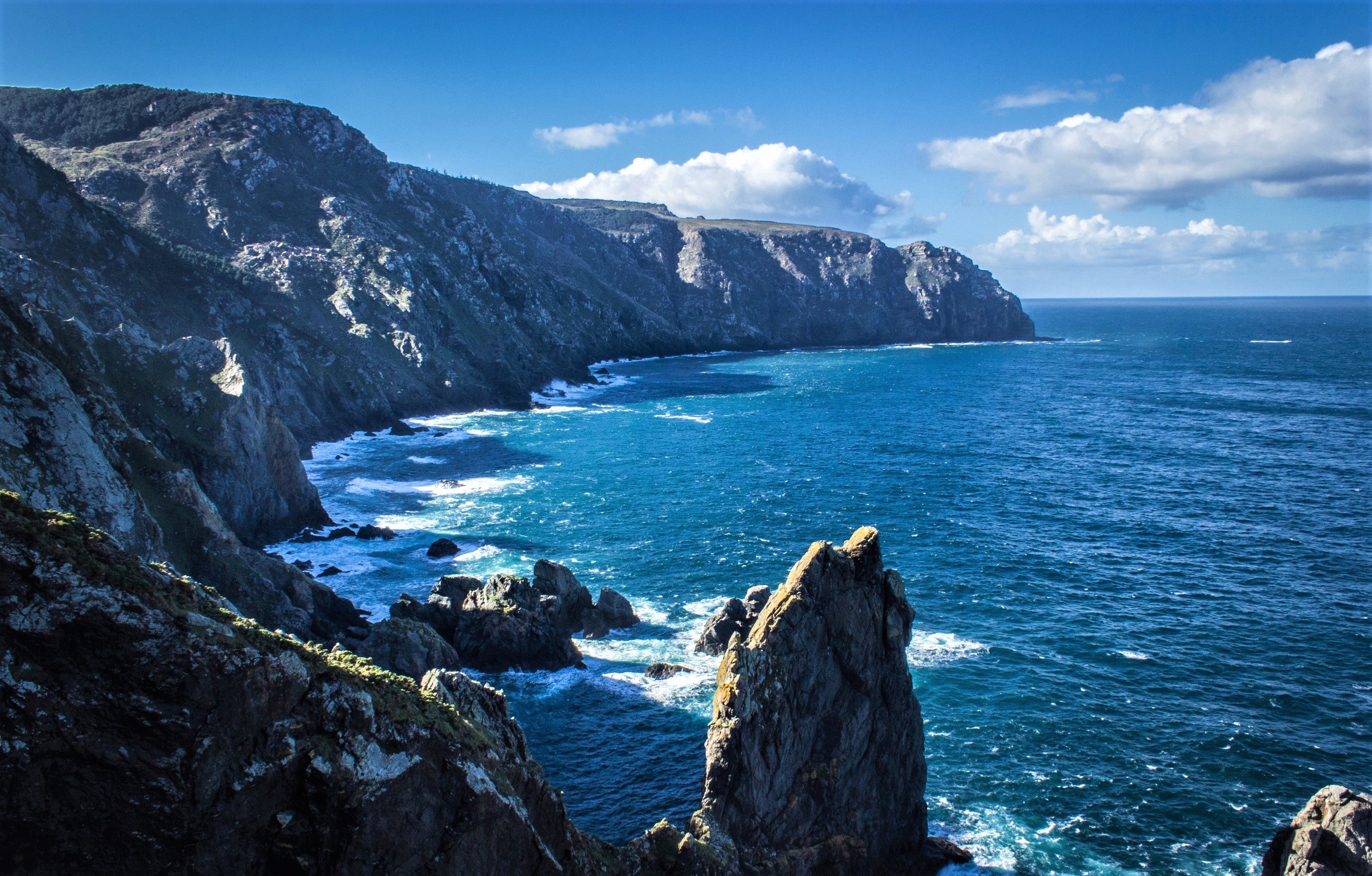 Continuaremos por los acantilados de Loiba, donde se encuentra el famoso «banco más bonito del mundo», auténtico balcón natural sobre el Atlántico.